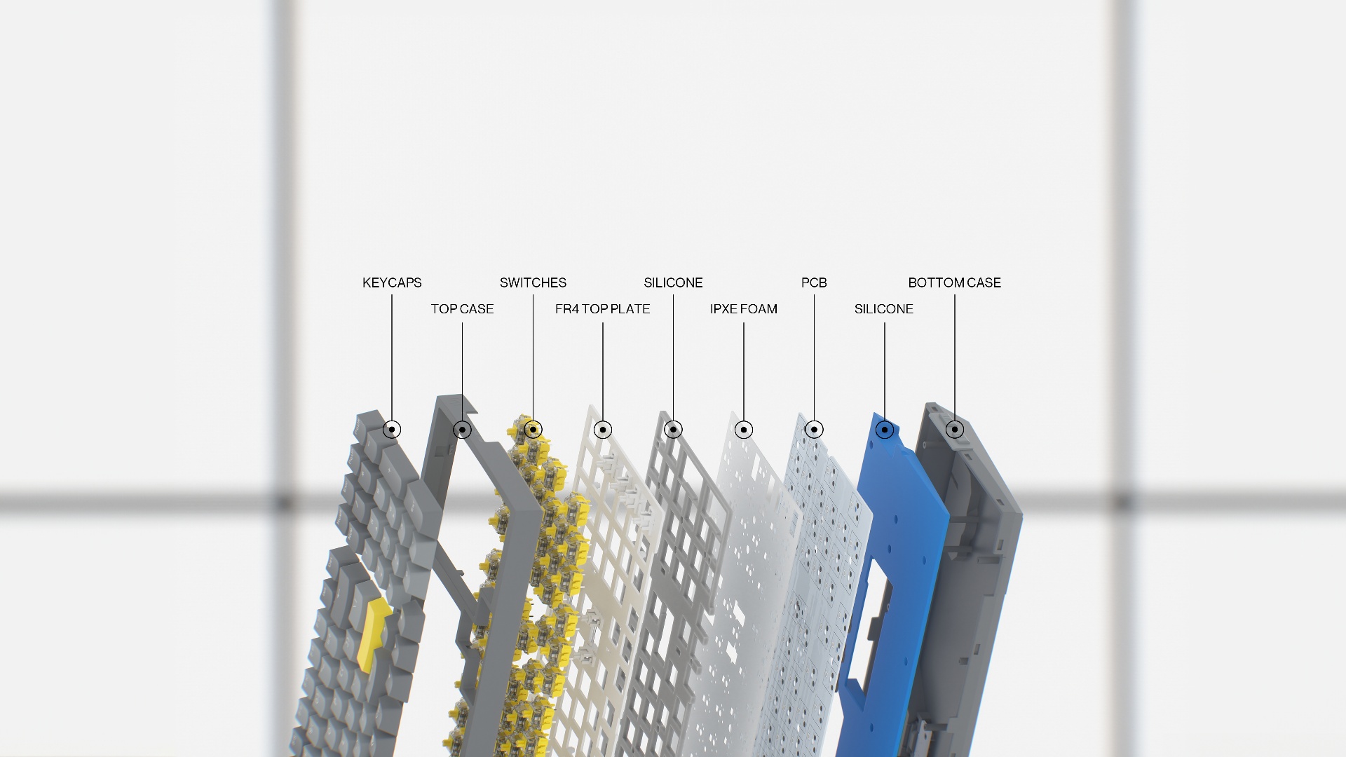 With an FR4 top plate made of fiberglass-reinforced epoxy, the Celeris 1800 offers a sturdy, non-flexing typing experience. High-quality PBT keycaps and factory-lubed stabilizers on longer keys ensure that every press feels consistent and premium.
