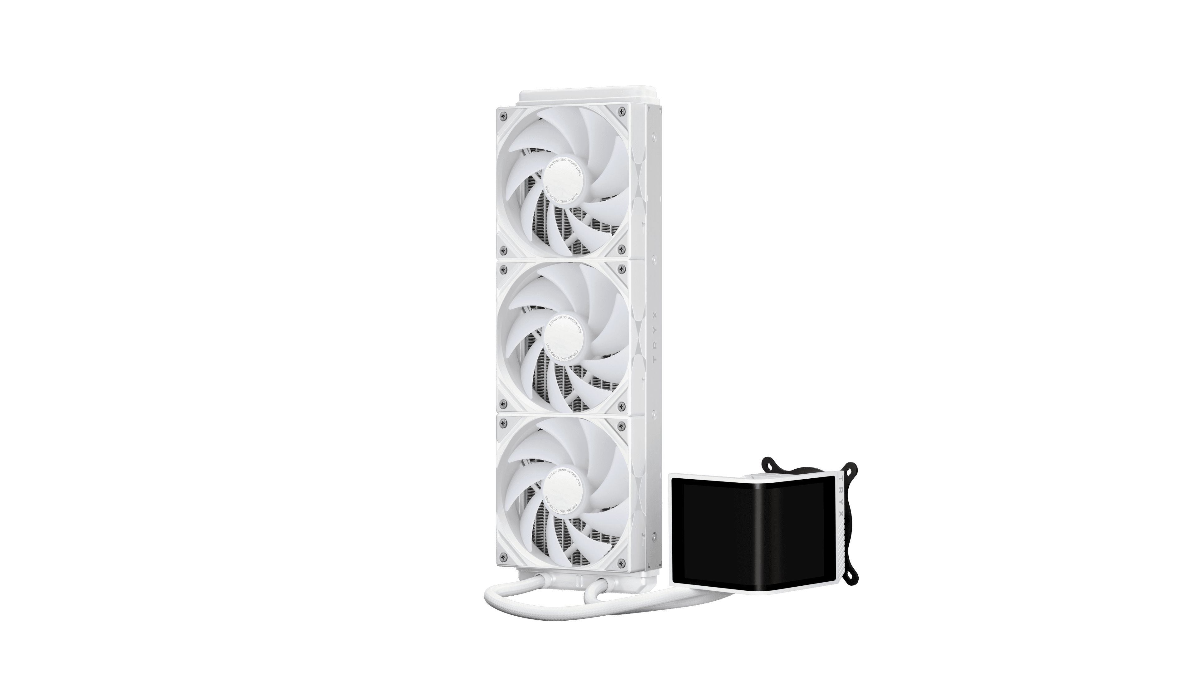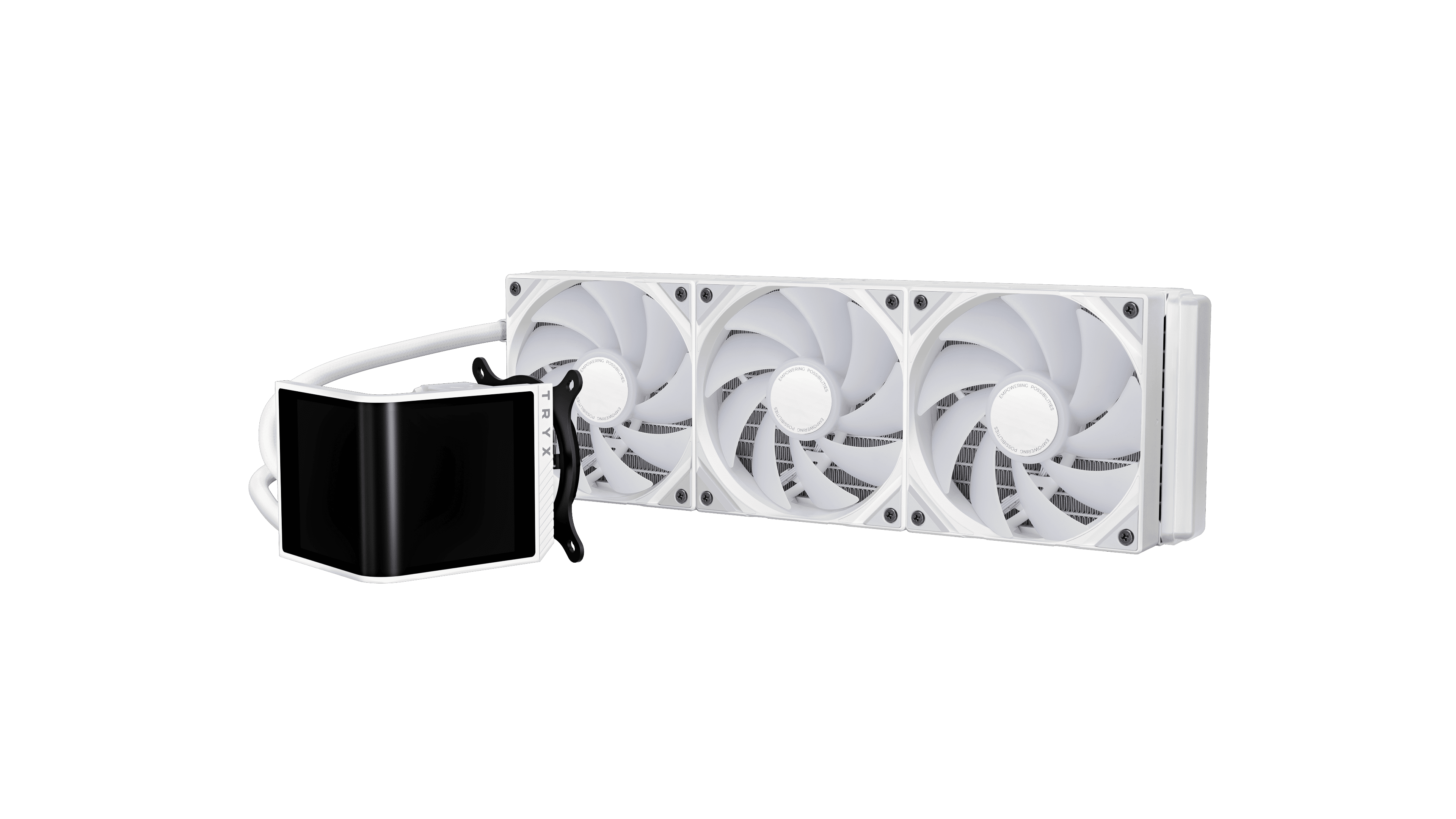 Elevate your white build to a new dimension with the TRYX PANORAMA SE (Special Edition) – the first AIO liquid cooler with a curved display for true 3D visuals.