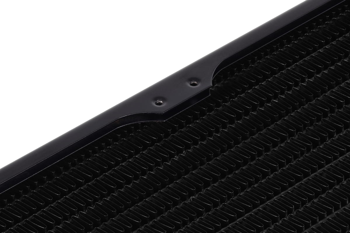 Fin spacing is always an important factor in radiator design. The new series from Alphacool has a fin design which allows it to perform extremely well even with slow-spinning and medium-speed fans. This is not only pleasant thanks to the fact that it avoids unnecessary noise; it also means that the choice of fans that can be used with these radiators is not restricted.