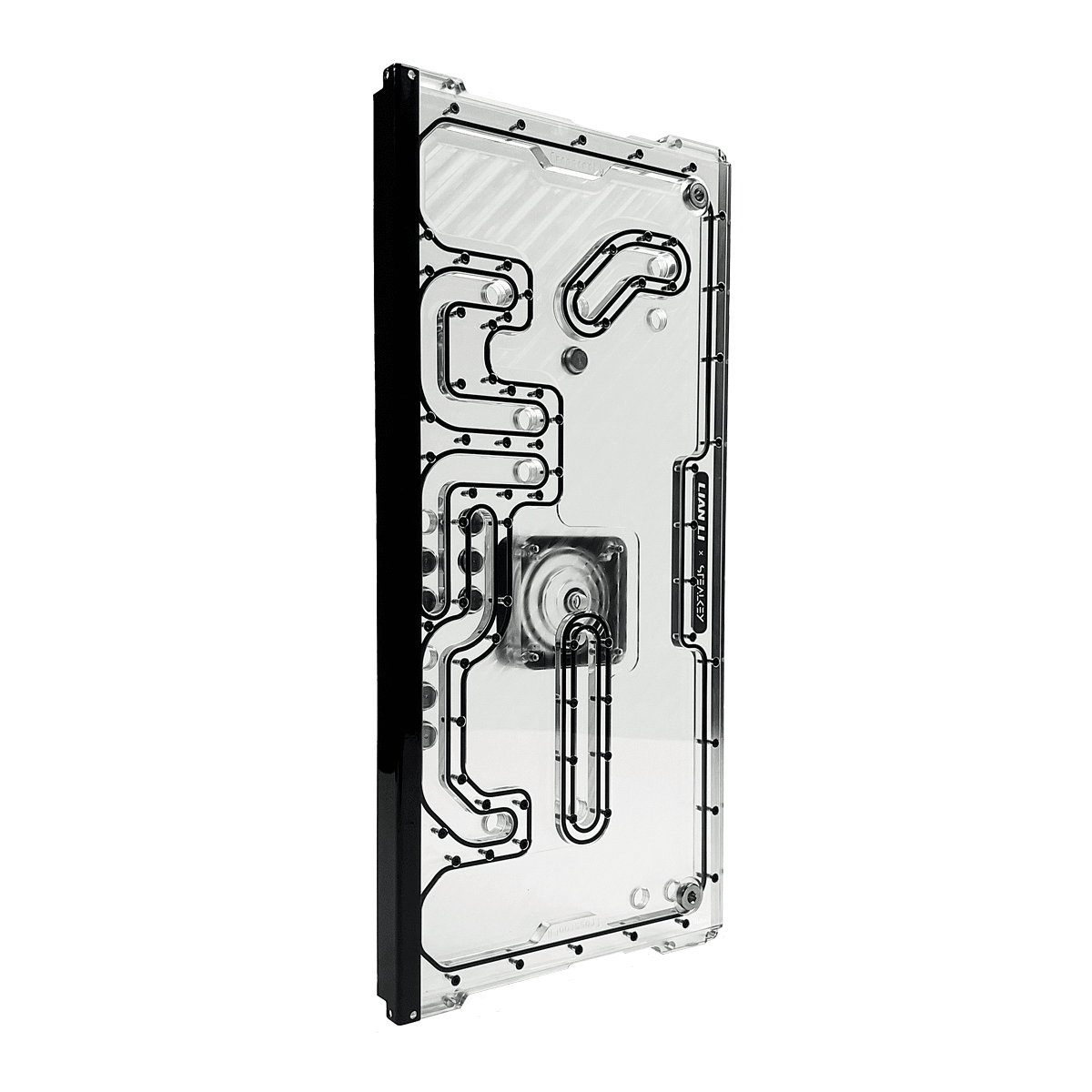 Maximize the aesthetics and efficiency of your Lian Li O11 Dynamic EVO XL with the Crosscool II Distro Plate from Stealkey Customs.