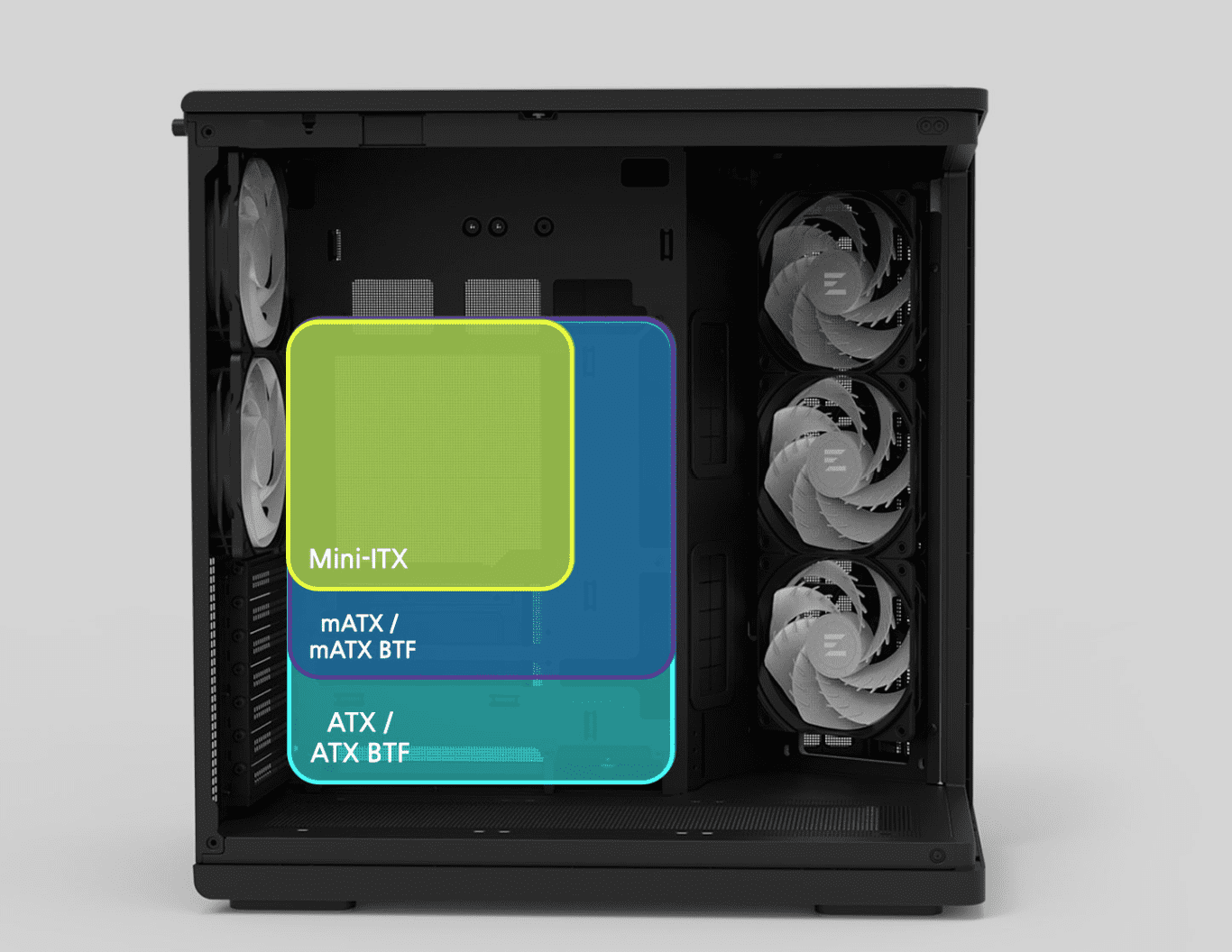 Flexibilität: Ob schlanke Arbeitsmaschine, leistungsfähiger Gaming-PC oder kompakte Content-Creator-Workstation – die Unterstützung von ATX, mATX und Mini-ITX macht den P60 vielseitig einsetzbar.