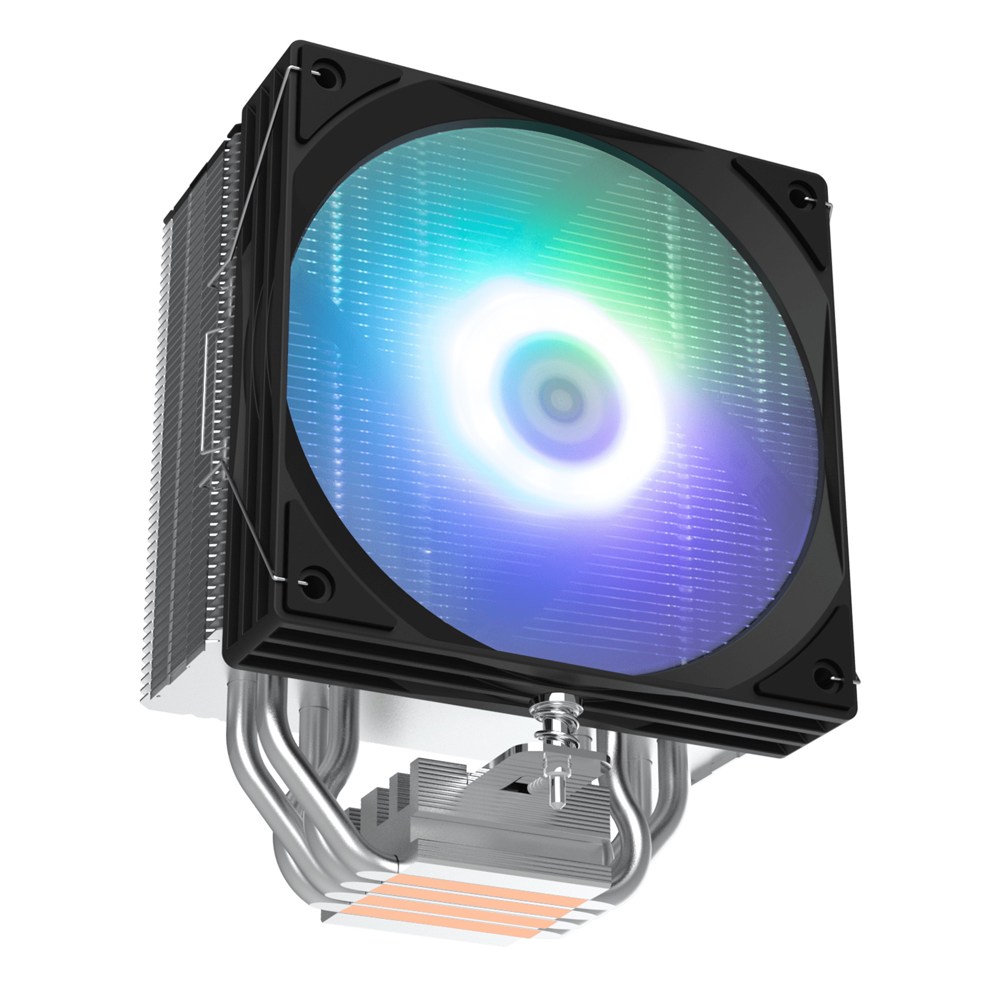 Die 120-mm-PWM-Lüftereinheit mit ARGB-Beleuchtung kombiniert effiziente Kühlung mit einem eindrucksvollen visuellen Effekt. Die weiß-matten Lüfterblätter verteilen das Licht gleichmäßig und setzen das Gehäuse stimmungsvoll in Szene. Dank optimierter Drehzahlregelung bleibt der Lüfter mit maximal 29,5 dB(A) selbst unter Volllast angenehm leise.