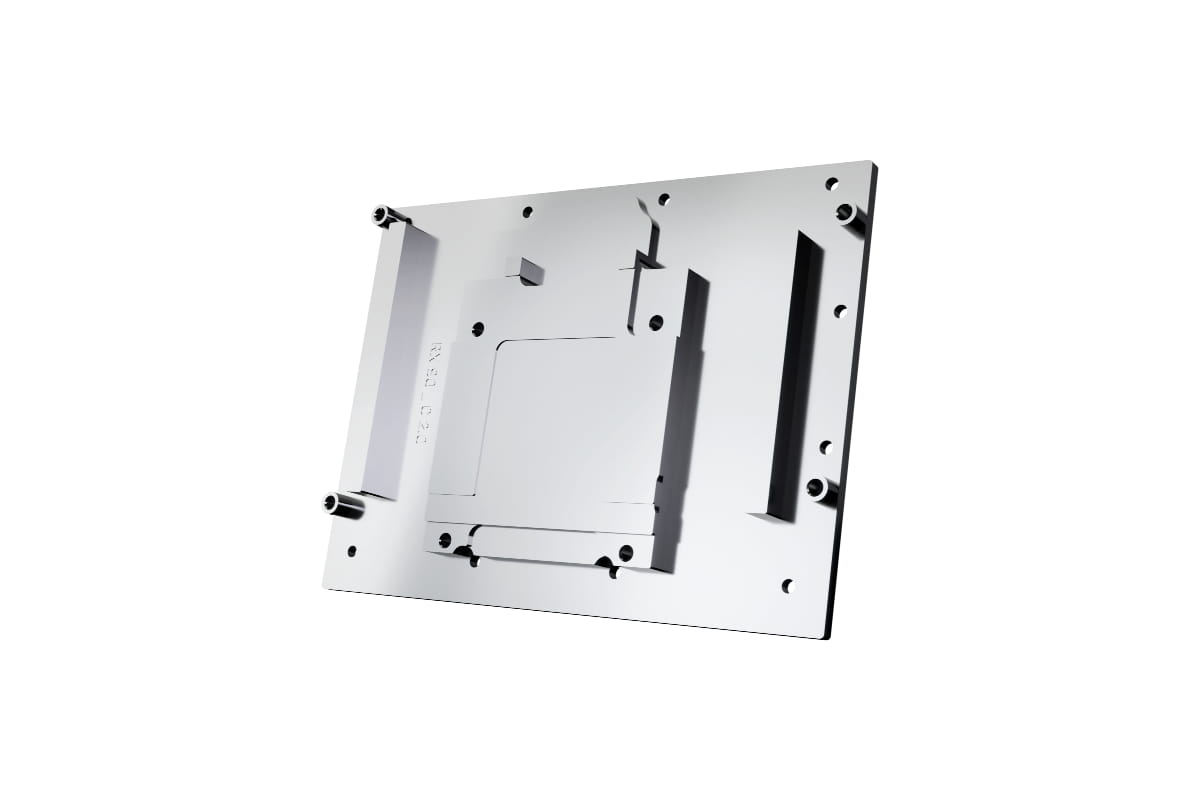 Im Zentrum des Kühlers befindet sich der aus einem Stück gefräste Kupferkühler, ergänzt durch ein präzise aus Messing gefertigtes Anschlussterminal mit einem Nylon-Cover. Eine Verchromung macht den Kupferkühler widerstandsfähiger und sorgt für eine glattere sowie strahlendere Oberfläche als bei einer herkömmlichen Vernickelung.