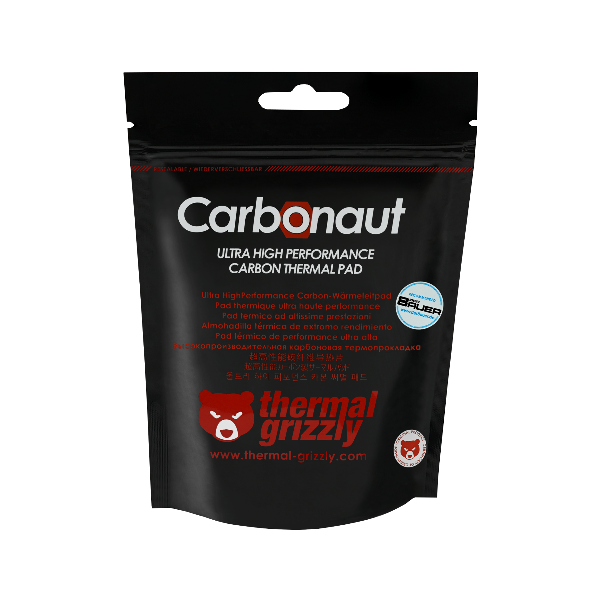 I cuscinetti termici in carbonio high-tech della serie Thermal Grizzly Carbonaut possono essere utilizzati in modo eccellente come alternativa alle paste termiche del segmento di prestazioni medie. Hanno il vantaggio esclusivo di essere riutilizzabili e hanno una superficie molto elastica e adattabile con una conducibilità termica molto elevata. Anche le più piccole differenze nei componenti possono essere compensate molto bene.