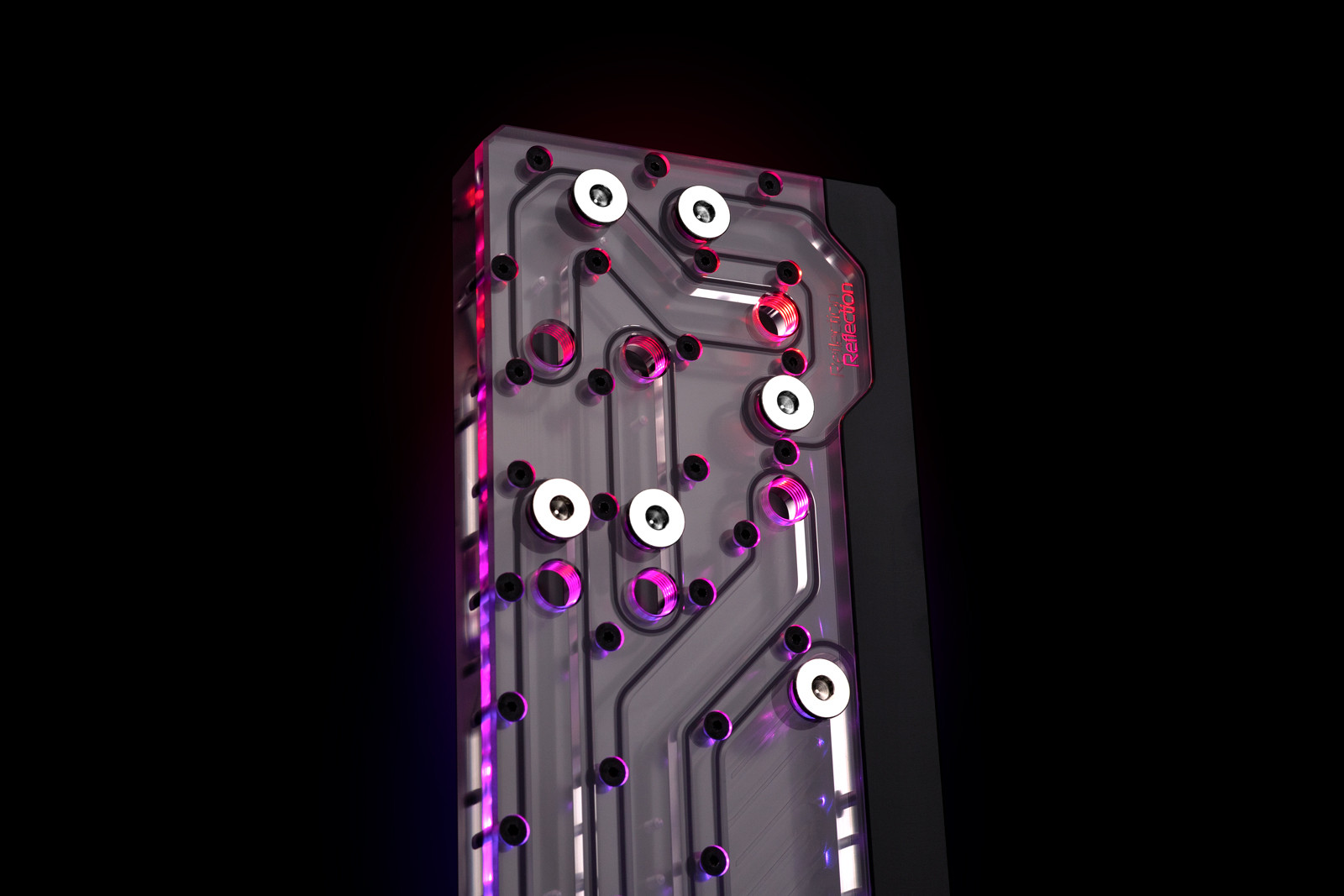 The EK-Quantum Reflection Fractal ATX D5 PWM D-RGB is a water cooling reservoir, routing and pump solution made to fit several Fractal Design ATX size cases. This "distro plate" is specifically designed to provide an advanced water cooling solution with a market-leading D5 pump for users who are building custom loop liquid cooling solutions with Fractal Design cases.