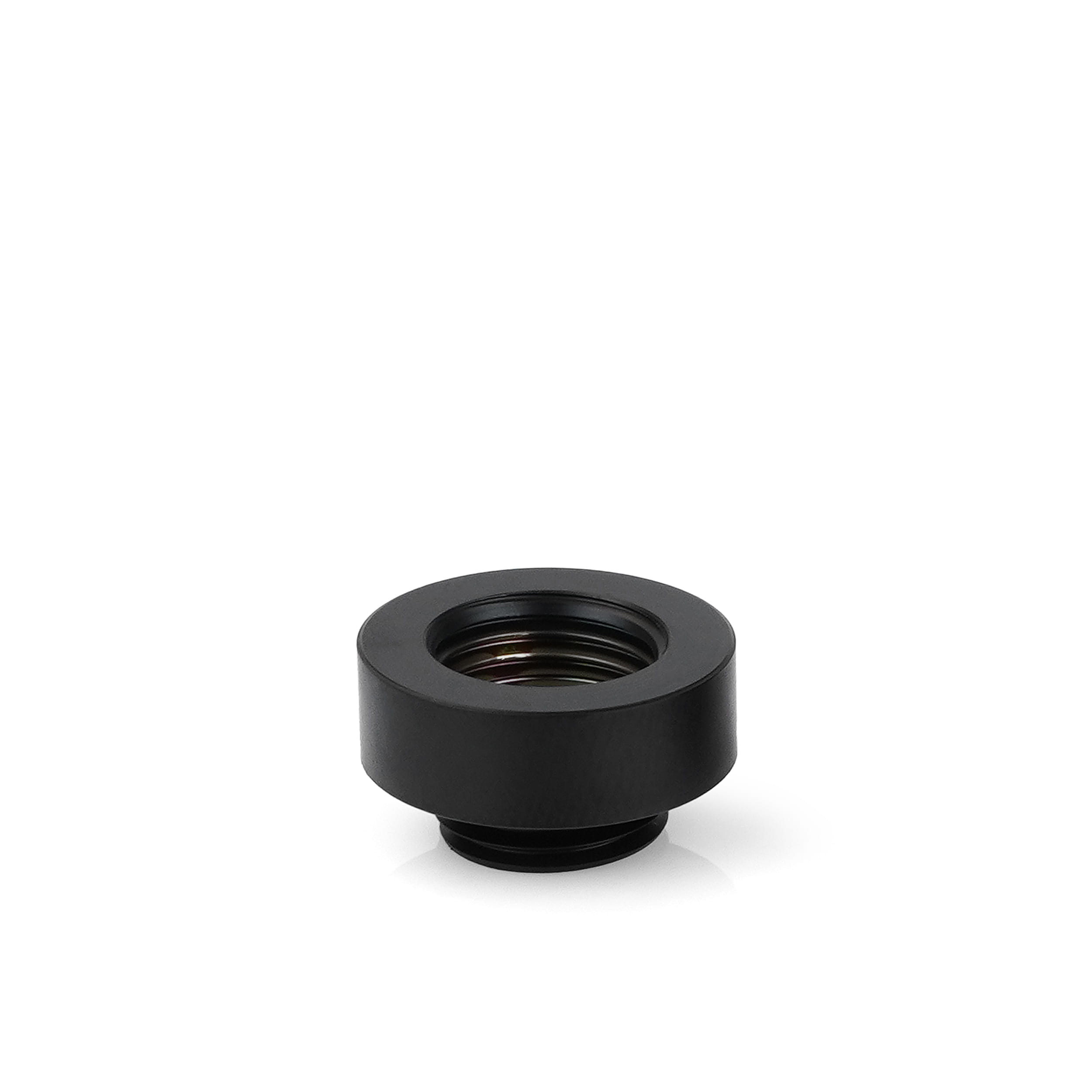 The DeltaMate Extender - MF7 in matte black features a G1/4-inch male and a G1/4-inch female thread. As an extension fitting, it increases the distance between two components by 7 mm. The matte black chrome coating provides a high-quality finish that is also easy to clean. Thanks to the consistent outer diameter of all DeltaMate connectors, the products integrate seamlessly into your water cooling system.