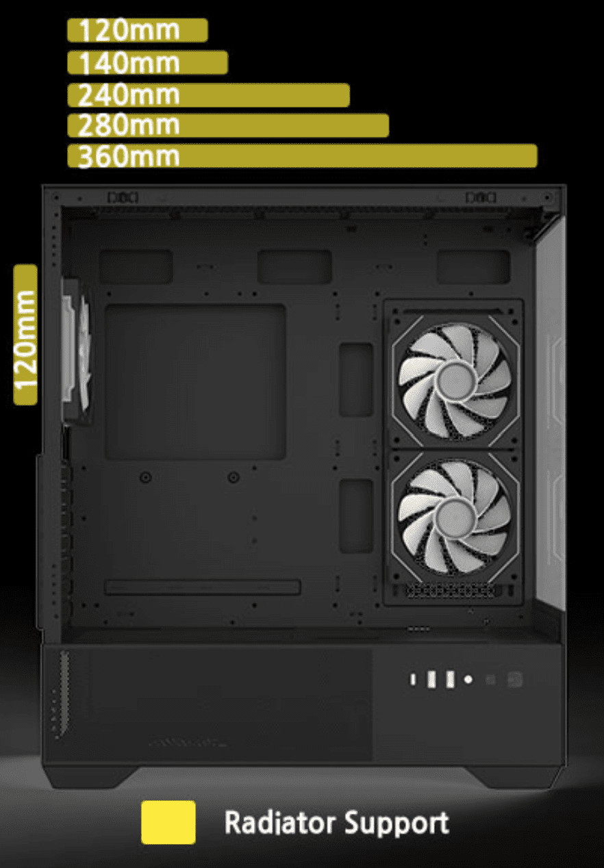 Unterstützt verschiedenste Lüfter- und Radiatorgrößen – inklusive ARGB-Kompatibilität für optische Highlights und starke Kühlleistung.