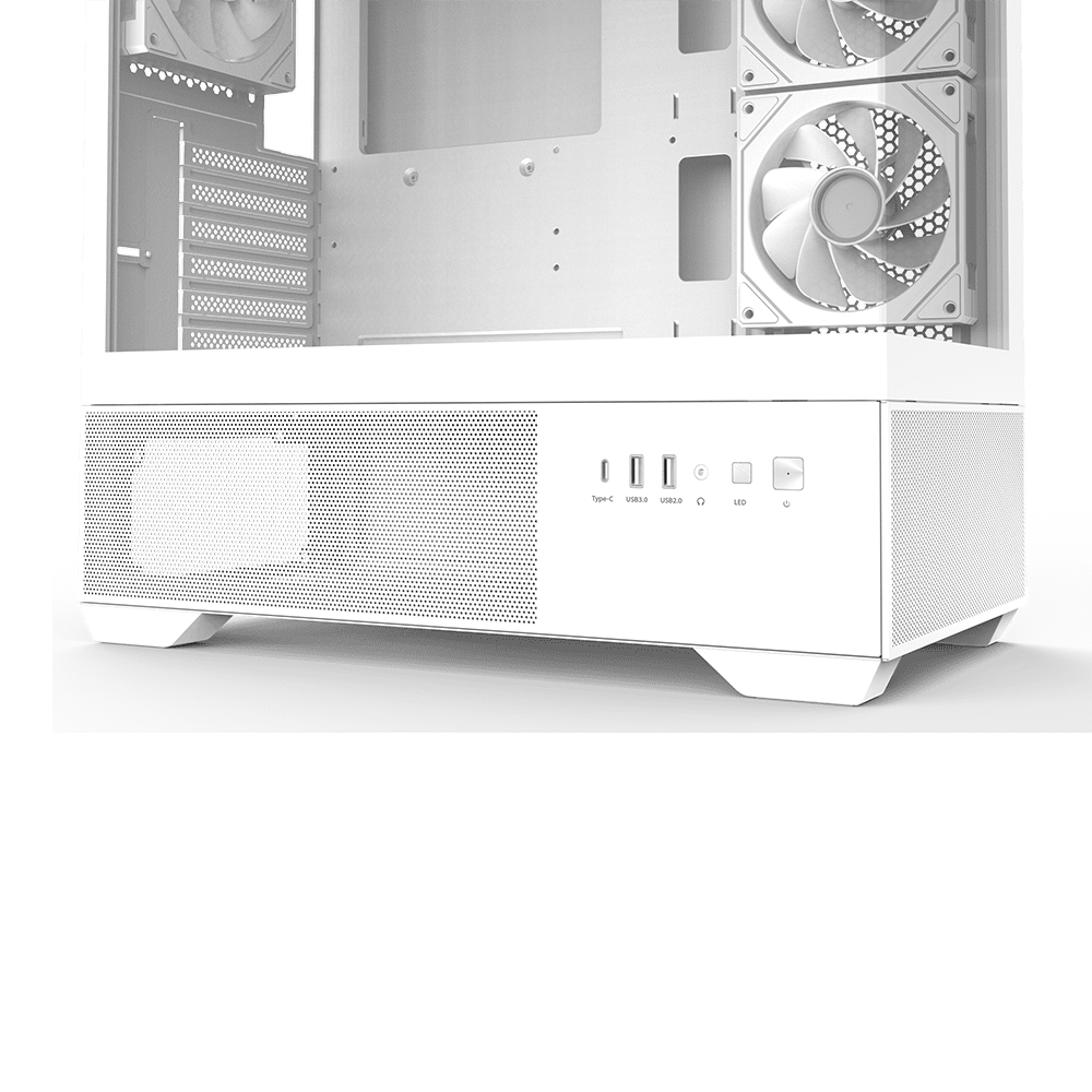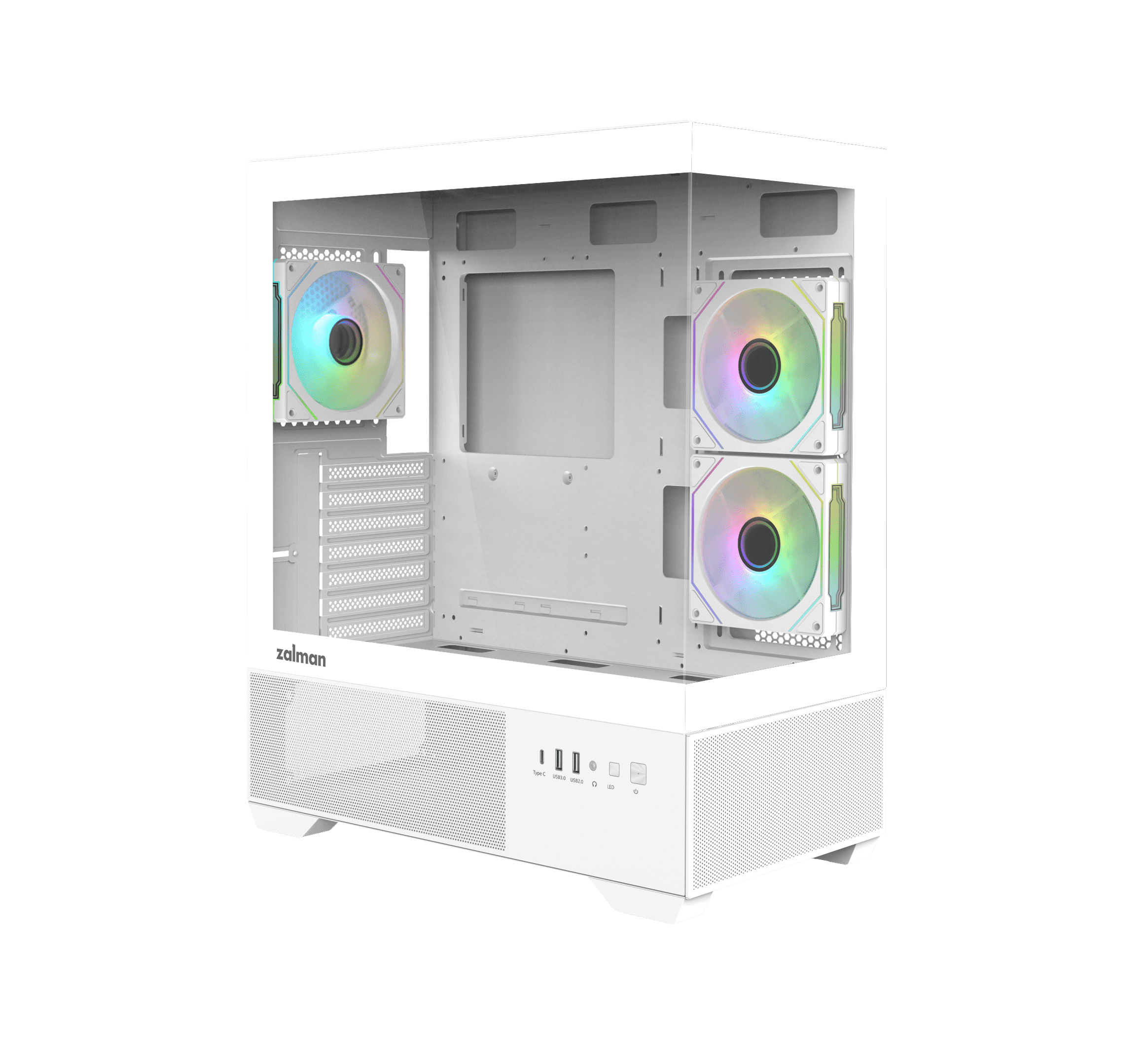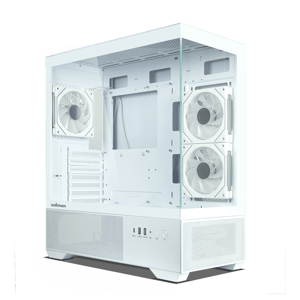 as ZALMAN Chronix Mid-Tower-Gehäuse vereint ästhetisches Design mit durchdachter Funktionalität – die perfekte Wahl für ambitionierte PC-Builder. Mit einem perforierten Boden für optimale Belüftung und einer zweiteiligen Panorama-Glasfront, setzt das Gehäuse nicht nur optische Akzente, sondern bietet auch klare Sicht auf die hochwertigen Komponenten im Inneren.