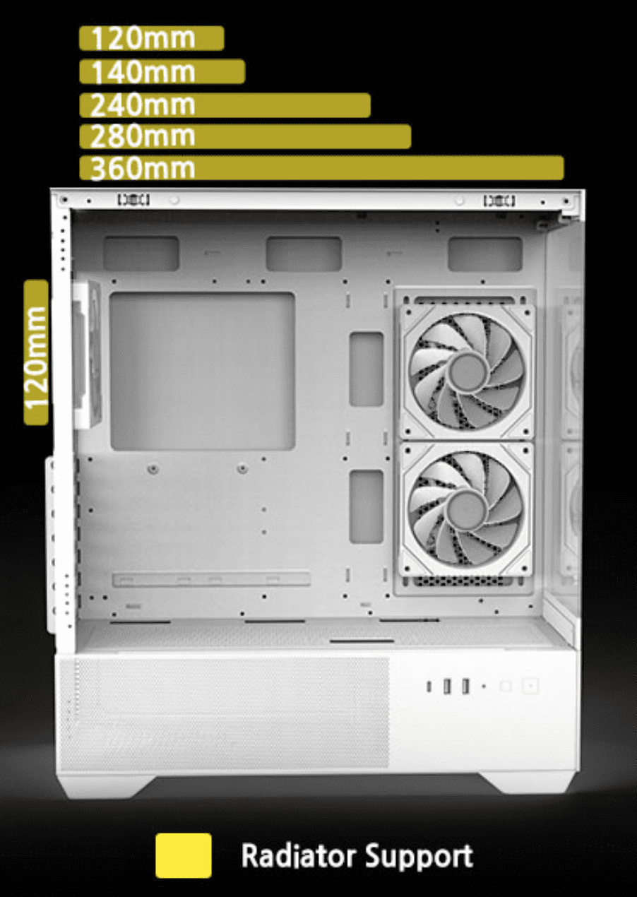 Unterstützt verschiedenste Lüfter- und Radiatorgrößen – inklusive ARGB-Kompatibilität für optische Highlights und starke Kühlleistung.