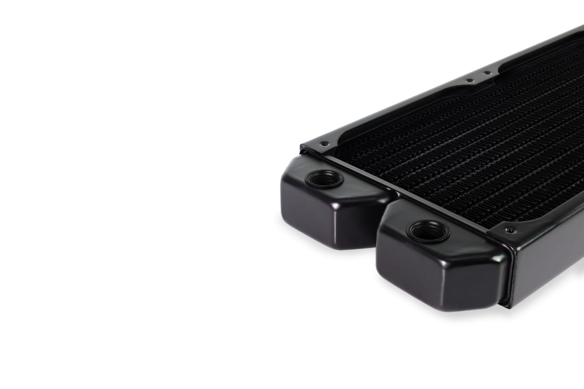 NexXxoS ラジエーターの接続オプションは多岐にわたります。狭い ST30 ラジエーターには 2 つのインレットと 2 つのアウトレットがありますが、XT45 以降の厚いラジエーターにはすべて、G 1/4 インチ フォーマットの 3 つのインレットとアウトレットがあります。後部前室には、充填または通気用の G 1/4 インチ接続もあります。これにより、ラジエーターを任意の位置に取り付けることができます。