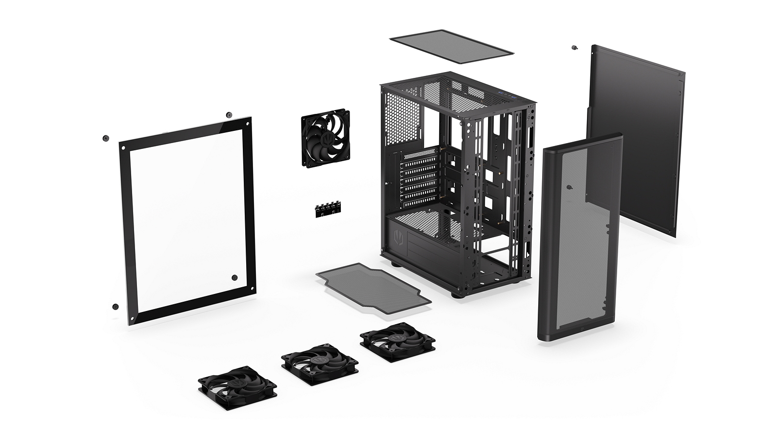True to its name, the Ventum 200 Air is exceptionally airy. The metal front panel features fine perforations (less than 0.9 mm in diameter) for optimal airflow. To give your build a head start, we’ve pre-equipped the case with four premium fans: