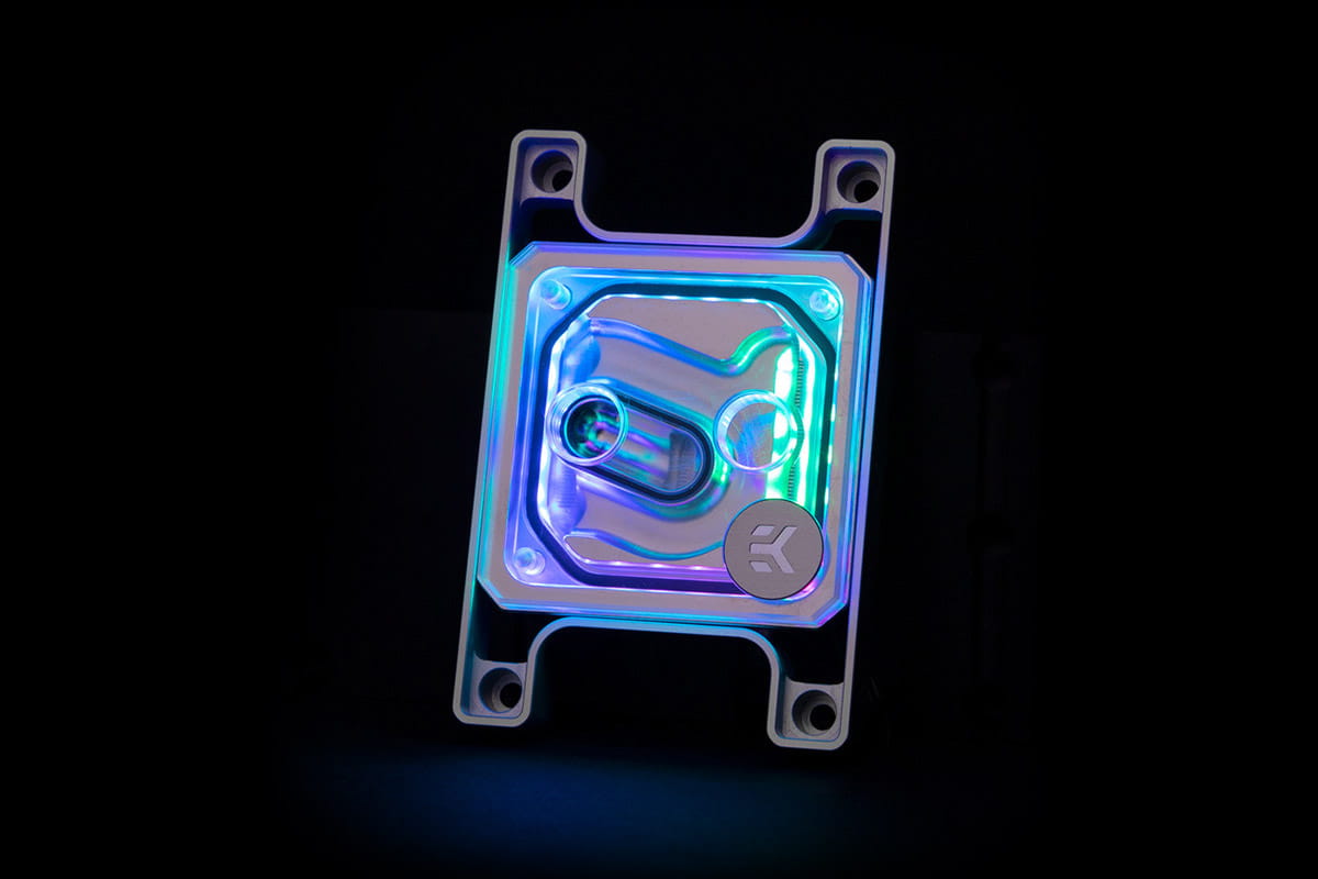 Ein CNC-gefräster massiver Messingeinsatz ermöglichte es, den Kühlmotor deutlich zu vergrößern und zu optimieren. Im Vergleich zu früheren Generationen von Wasserblöcken hat das Finnenarray eine 50% größere Oberfläche, die alle auf einer kleineren Grundfläche enthalten sind, um maximale Kompatibilität auch mit mITX-Motherboards zu gewährleisten. Die Kupferkühlplatte verwendet 0,40 mm breite Mikrokanäle und 0,26 mm dicke Mikrofins, um die Wärmeübertragung bei minimaler Durchflussbeschränkung zu maximieren.